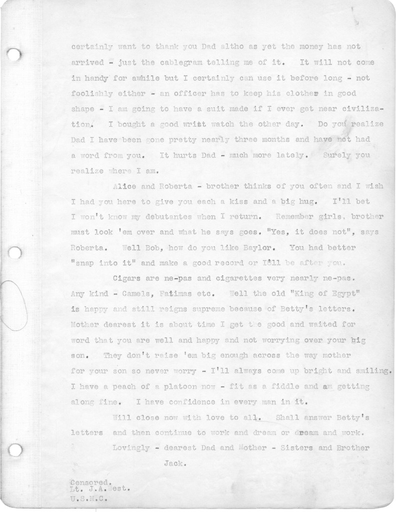 Thank you Cousin Elizabeth. Probably have 3+ batches of letters to go. I think the ones to come get a little more interesting. Good to hear from you. J.