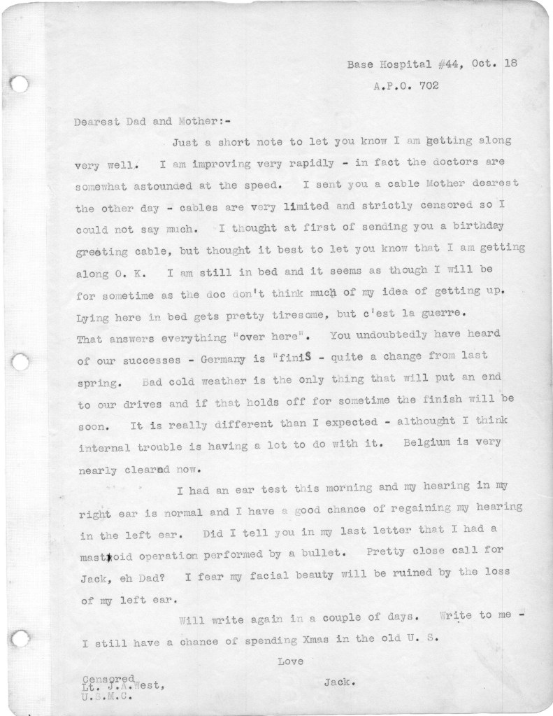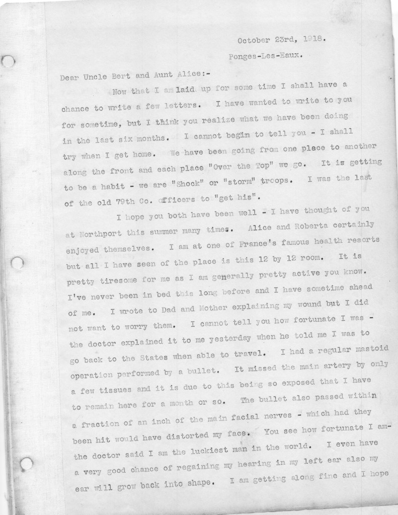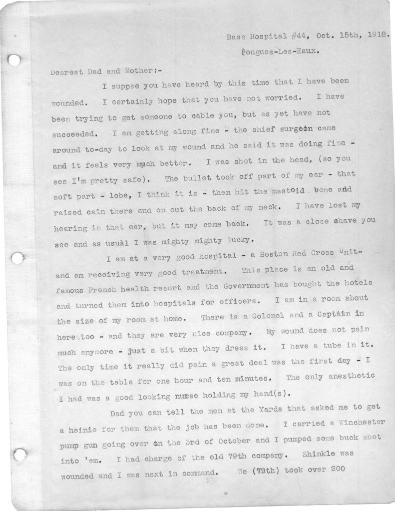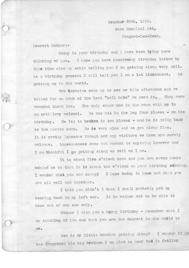 John, so glad you & Ginger are back in KY! So interesting-and scary-to read your dad’s letters home during this latter part of the war. His leadership and bravery were certainly worthy of the Distinguished Service Cross-loved the picture of him and the award. Did he ever recover his hearing in the injured ear?? Also cannot imagine how your mother must have felt following his injury which was nearly fatal (my nursing background!). Please send me your new address when you get a chance and say hi to Ginger!