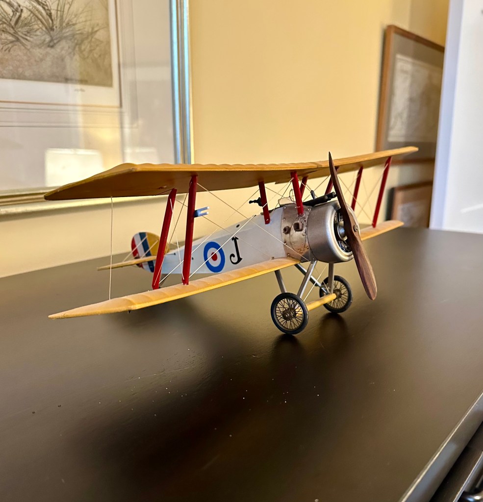 A model of a British Sopwith Camel, the most successful fighter plane of WWI.